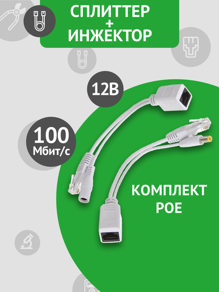 Устройство способно обеспечить питание по витой паре для устройств, которые не имеют поддержки PoE. Примерами такого оборудования, в частности, могут являться IP-камеры, точки доступа, коммутаторы и маршрутизаторы. Комплект PoE (сплиттер + инжектор) характеризуется выходным напряжением, равным 12В постоянного тока. Он поддерживает скорость передачи данных до 100 Мбит/с. Дальность работы инжектора может достигать 30 м. Цвет устройства – белый. Есть защита от короткого замыкания, перегрузки по току и перегреву.