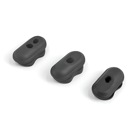 и другие электросамокаты Комплектация - 3 шт Цвет: черный Заглушки из плотного резинового материала, оснащены кабель-каналами. Служат для фиксации кабелей и герметизации отверстий рулевой в месте прокладки кабелей внутри рулевой в электросамокате Ninebot MAX