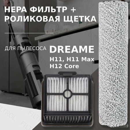 Набор для вертикального моющего пылесоса, который совместим с моделями Dreame H11 / Dreame H11 Max / Dreame H12 Core состоит из роликовой щётки (валика) из высококачественной микрофибры и нейлона, а также HEPA фильтра.