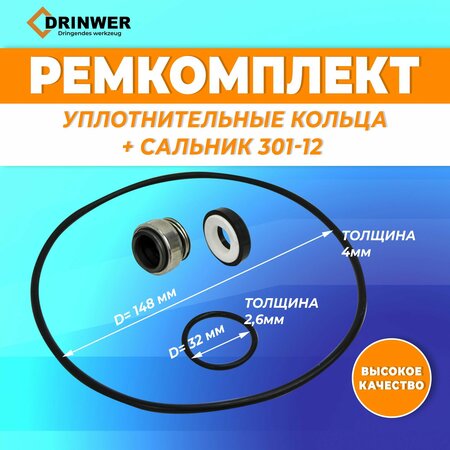 Комплект Сальник (301-12) + Набор уплотнительных колец для насоса/насосной станции Вихрь. -набор уплотнительных колец для насоса И насосной станции Уплотнительное кольцо ф4х140 мм. -1 шт. Уплотнительное кольцо ф2, 6х26 мм. -1 шт. -торцевое уплотнение 301-12/26 Наружный диаметр сальника : 24 мм. Внутренний диаметр сальника : 12 мм. Наружный диаметр ответной части: 26 мм. Толщина ответной части: 8 мм. Сальник пружинный для насоса 301-12 + кольцо керам. (комплект) комплект подходит для насоса: вихрь, СВД, НБЦ, НПЦ-301-12Р Калибр, Leo, Grandfar, Тайфун, 4WATER, OASIS, Vodotok и другие.