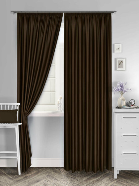 Комплект штор для комнаты Блэкаут однотонный матовый Shtoraland на ленте для крючков, две портьеры. Общий размер 400x270, шоколадный цвет