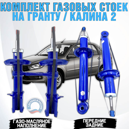 Комплект газо-масляных передних стоек и задних амортизаторов от производителя Asvic. Отлично работают как в + так и в - температуру. На производстве проходят проверку на специальном стенде, поэтому брак исключён в 99,99% ! В комплекте левая передняя стойка и правая передняя стойка, левый задний и правый задний амортизатор. Шток закреплён специальной лентой. Подходят на все модификации Гранта, Калина 2 и Датсун он-ДО, ми-ДО.
