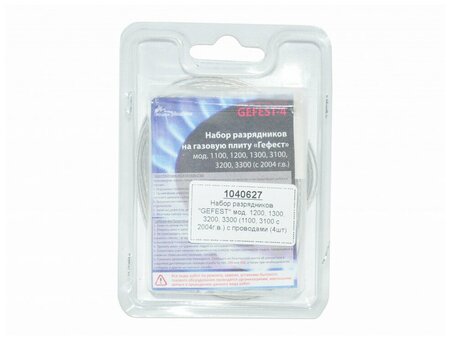 Набор разрядников для газовой плиты 'GEFEST' мод. 1100, 1200, 1300, 3100, 3200, 3300 (с 2004г. в.) с проводами (4шт), арт. 1040627 Данный набор свечек может поставляться без блистера (см. фото №3) В наборе свечек без блистера длина проводов всех свечек 520 мм Характеристики: Тип: запчасти Тип запчасти: свеча розжига Назначение: для газовой плиты Совместимость: GEFEST Цвет: белый Комплект поставки: Свеча розжига стола с проводом L-220 мм (19.00.000-001) - 1 шт. Свеча розжига стола с проводом L-325 мм (19.00.000-003) - 1 шт. Свеча розжига стола с проводом L-480 мм (19.00.000-005) - 1 шт. Свеча розжига стола с проводом L-550 мм (19.00.000-007) - 1 шт. Паспорт-упаковка Список моделей не полный GEFEST 1100 с 2004г. в. GEFEST 1200 с 2004г. в. GEFEST 1300 с 2004г. в. GEFEST 3200 с 2004г. в. GEFEST 3300 с 2004г. в. GEFEST 3100 с 2004г. в.
