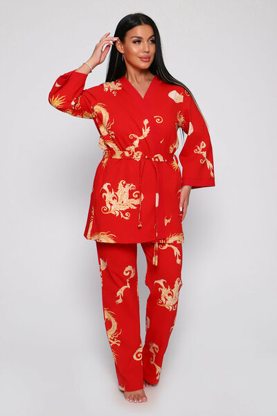 Достоинства:Красивая пижама,приятная к телу Недостатки:единственное немного выцвела после стирки,но не критично Комментарий:Красивая,необычная пижама