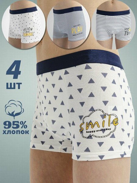 Набор нижнего белья для мальчиков, который сочетает в себе комфорт и стиль. Обратите внимание на детские трусы-боксеры из хлопка в удобном комплекте из 4 штук. Эти трусики специально разработаны для детей и подростков, чтобы обеспечить им максимальный комфорт в повседневной жизни. Изготовленные из натурального хлопка, они позволяют коже дышать и не вызывают раздражений. Трикотажный дышащий х/б (хлопок в составе 95%) материал обеспечивает идеальную посадку на теле, не стесняя движений. Такой набор трусов идеально подходит для школьного гардероба вашего ребенка. Он не только практичный, но и стильный. Яркий и красивый дизайн сделает его любимым нижним бельем вашего подростка. Специально созданный брендовый дизайн и качественные плоские швы придают этому комплекту особый шарм. Одним из главных преимуществ наших трусов-боксеров является их долговечность. Они легко переносят многочасовую носку и многократные стирки без потери цвета и формы, они не линяют и не растягиваются. Вы можете быть уверены, что этот комплект прослужит вашему ребенку долгое время. Трусы-боксеры из хлопка 4 шт. - это отличный выбор для тех, кто ценит качество и комфорт. Подарите вашему мальчику набор, который будет радовать его каждый день. Позвольте ему чувствовать себя уверенно и стильно, начиная с нижнего белья. Товар прошел всю необходимую сертификацию в РФ. Детские трусы для мальчиков должны быть дышащими, очень комфортные в носке и не стеснять движений и именно этим характеристикам отвечают подростковые боксеры от нашего бренда.