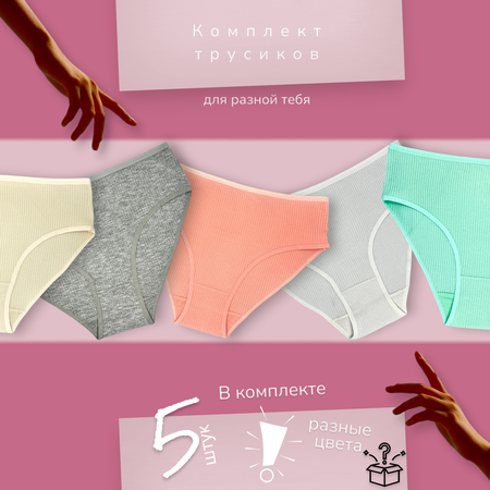 Набор женских трусов, трусики слипы подойдут почти на любой размер по своей размерной сетке, указанной на фото. Женские трусики из дышащего хлопка, станут приятной частью Вашего дня. В них Вам будет удобно заниматься спортом, а также использовать в повседневной жизни. Комплекты слипов для Вас: Набор - 5 шт. разных цветов. Этот идеальный набор подойдёт вам на все случаи жизни, трусы слипы, это идеальный формат посадки, для повседневного использования. Рады предложить Вам женские трусики по выгодной цене. Очень легкое гипоаллергенное нижнее белье не вызывает раздражения и дискомфорта, превосходно сидит на теле. Женское белье, нижнее белье, набор трусов, женские трусы, комплект для девушки, девочки, женщины, трусы из хлопка, слипы трусы, трусы для девушки, женщины. Женское нижнее бельё. Идеально подойдет для любой фигуры. Трусики это неотъемлемая часть гардероба каждой девушки, идеальное соприкосновения с телом и совсем не заметны под одеждой, даже самой облегающей. Трусы комплект в рябчик, подарок девушке, женщине маме любимой для беременных и кормящих для взрослых, подойдёт как подарок подругам трусы слипы.