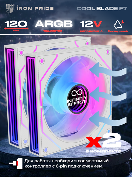 Вентилятор Iron Pride COOL BLADE F7 120мм ARGB - это высококачественное решение для охлаждения корпуса вашего компьютера. Диаметр вентилятора составляет 120 мм, он обеспечивает максимальный воздушный поток 42 CFM и максимальную скорость вращения 1200 оборотов в минуту. Особенностью вентилятора является его гидродинамический подшипник, который обеспечивает бесшумную работу и долгий срок службы. Максимальный уровень шума составляет всего 24 дБ, что делает их практически бесшумными. Вентилятор оснащен разноцветной регулируемой подсветкой A-RGB, которая добавляет эстетическую привлекательность и позволяет настроить подсветку в соответствии с вашими предпочтениями. Для работы вентилятора необходим совместимый контроллер с подключением через 6-pin коннектор. Выбирая Iron Pride COOL BLADE F7 120мм ARGB, вы получаете надежное и эффективное решение для охлаждения вашего компьютера, которое сочетает в себе качество, производительность и стильный дизайн