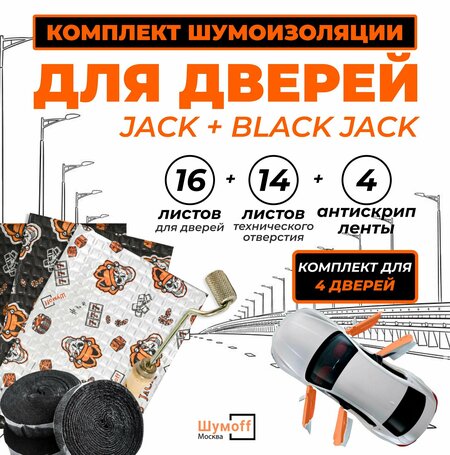 Состав комплекта: Black Jack - 16 листов (270*370 мм) Jack - 14 листов (270*370 мм) Специфик - 4 ленты Ролик прикаточный удлиненный Комплект идеально подходит для шумоизоляции четырех дверей на седане (Kia Rio, Hyundai Solaris, Volkswagen Polo и др.) или кроссовере (Cherry Tiggo 4, Hyundai Creta, Kia Seltos, Geely Coolray и др.). Включает в себя облегченную виброизоляцию серии Jack, что позволяет зашумоизолировать двери без утяжеления веса с максимальным эффектом. Первым слоем внутрь двери применяется материал Black Jack с увеличенной адгезией и толщиной 2.7 мм. Вторым слоем для достижения максимального эффекта шумоизоляции рекомендуем дополнительно приобести тепло-звукоизоляцию Комфорт 6/Комфорт А20Pro. На технологические отверстия применяем материал Jack 2 мм, тем самым создавая эффект "короба", что позволит улучшить звучание акустики в автомобиле. Избавиться от надоедливого скрипа позволит уплотнительно-декоративный материал в удобном формате в виде ленты - Specific. Одного рулончика хватает на 1 дверную карту. Для прикатки материала потребуется удлиненный прикаточный ролик с удобной деревянной ручкой, который позволит добраться до самых труднодоступных мест. Материал прост в установке, легко раскраивается по специальной разметке на оборотной стороне, а также не требует нагрева! Данный комплект позволит снизить шум в автомобиле, а музыка в салоне зазвучит по новому!