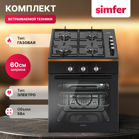 Встраиваемый набор Simfer H60Q40B400, B6EB16001 - комплект, состоящий из газовой варочной поверхности и электрического духового шкафа, созданный для того, чтобы облегчить жизнь каждой хозяйке в приготовлении самых разнообразных блюд. И для тех, кто мечтает о технике, гармонично сочетающейся с элементами кухни. Для того, чтобы воплотить свои кулинарные фантазии предусмотрены четыре газовые конфорки разные по диаметру и мощности, располагающиеся на рабочей поверхности из эмалированной стали. А разнообразные режимы в духовом шкафу дадут вам возможность выбора оптимального способа приготовления для каждого блюда. Контролировать этот процесс, благодаря освещению камеры, вы сможете, не открывая дверцу духовки. Готовьте вкусную еду и проводите семейные ужины в комфортной и уютной обстановке!
