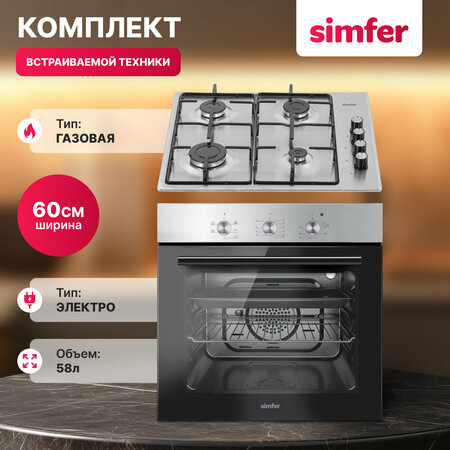 Встраиваемый набор Simfer H60Q40M400, B6EM16001 - комплект, состоящий из газовой варочной поверхности и электрического духового шкафа, созданный для того, чтобы облегчить жизнь каждой хозяйке в приготовлении самых разнообразных блюд. И для тех, кто мечтает о технике, гармонично сочетающейся с элементами кухни. Для того, чтобы воплотить свои кулинарные фантазии предусмотрены четыре газовые конфорки разные по диаметру и мощности, располагающиеся на рабочей поверхности из эмалированной стали. А разнообразные режимы в духовом шкафу дадут вам возможность выбора оптимального способа приготовления для каждого блюда. Контролировать этот процесс, благодаря освещению камеры, вы сможете, не открывая дверцу духовки. Готовьте вкусную еду и проводите семейные ужины в комфортной и уютной обстановке!