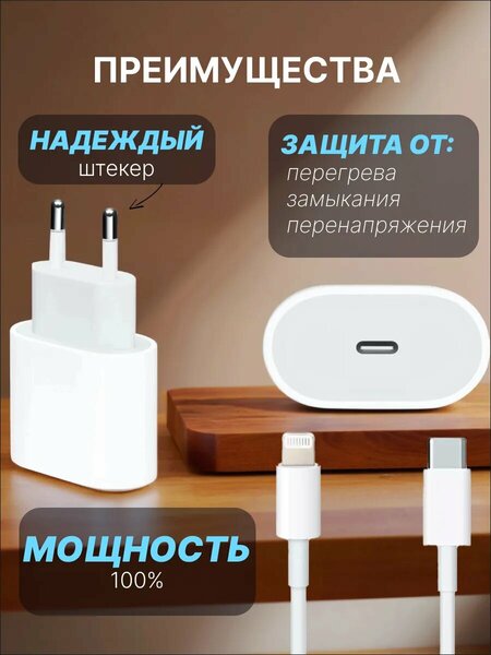 В комплект входит адаптер + провод. Зарядное устройство - это идеальное решение для быстрого и безопасного восстановления заряда вашего iPhone. Модель поддерживает технологию быстрой зарядки мощностью 20 Вт, что позволяет значительно сократить время зарядки вашего смартфона. Компактный и стильный дизайн зарядного устройства делает его удобным для использования дома, в офисе или в дороге. Кабель Type-C Lightning обеспечивает надежное соединение и совместимость с последними моделями iPhone. Надежный и эффективный способ всегда держать ваш iPhone заряженным и готовым к работе. Заряжайте свой iPhone быстро и безопасно.
