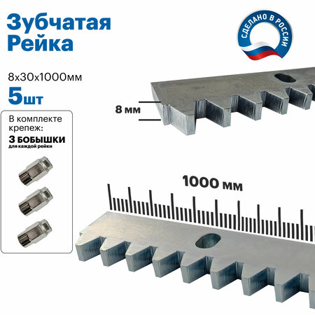 Зубчатая рейка передает усилие от шестеренки двигателя на полотно сдвижных ворот. Устанавливается на ворота оснащенные автоматикой - именно по ней будет "шагать" колесико шестерня электропривода. Простейший механизм зубчатой передачи исправно работает долгие годы, необходимо лишь правильно выбрать и установить рейку. Предпочтительный материал для изготовления зубчатой рейки для откатных ворот-оцинкованный металл. Зубчатая рейка KV 8мм- 8*30*1000 мм Толщина 8мм. Продаётся погонными метрами. Но существует модель реек из полимеров. Полимерная рейка. производится В россии. Отличие нашего производства от остальных продавцов зубчатой рейки, что мы используем материалы российских поставщиков, а это гарантирует высоко качество. Изделия оцинкованы по ГОСТ9.301-86. Все этапы производства(раскрой металла, гибка, оцинковка, сборка, упаковка), осуществляются на нашем производстве в Московской области деревня Ельня.