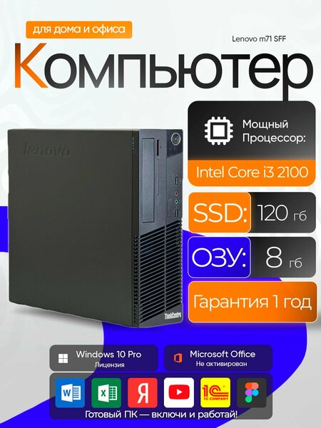Системный блок Lenovo M71 - это компактный и производительный компьютер, который отлично подойдет для простых офисных и домашних задач. Он станет отличным решением для домашнего обучения, сотрудника колл-центра, менеджера или бухгалтера. Процессор Intel Core i3-2100 с частотой 3,5 ГГц и 2 ядрами обеспечивает быструю и стабильную работу. 8 ГБ оперативной памяти DDR3 с частотой 1600 МГц позволяют комфортно работать с несколькими приложениями одновременно. Встроенная видеокарта Intel HD Graphics 2000 с 1 ГБ видеопамяти обеспечивает качественное изображение и позволяет работать с графическими приложениями. 120 ГБ SSD-накопитель обеспечивает быстрый доступ к данным и позволяет хранить большое количество файлов. Компьютер поставляется с предустановленной операционной системой Windows 10 Pro, что обеспечивает удобство и функциональность в работе. Системный блок Lenovo M71 выполнен в черном цвете и имеет компактный SFF корпус из ABS пластика и металла. Размеры корпуса составляют 370x340x100 мм, а вес - 5 кг. В комплект поставки входит системный блок, кабель питания и гарантийный талон на 1 год.