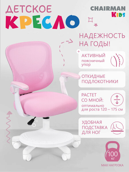 Компьютерное кресло для детей с подножкой CHAIRMAN CH 106 ткань/сетка розовый, стул для школьника с подлокотниками белое