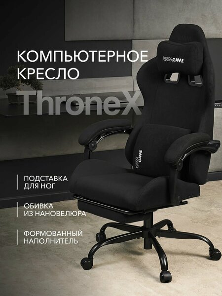 Кресло компьютерное VMMGAME THRONEX BLACK с подставкой для ног, черный