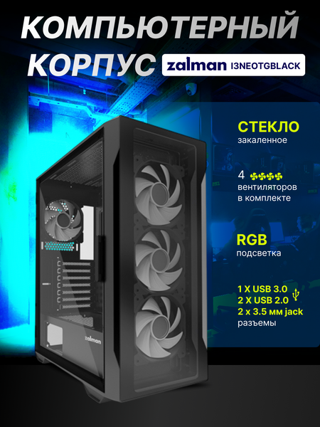 Компьютерный корпус Zalman I3NEOTG, Без БП, 4 кулера в комлекте, стекло, ARGB подсветка