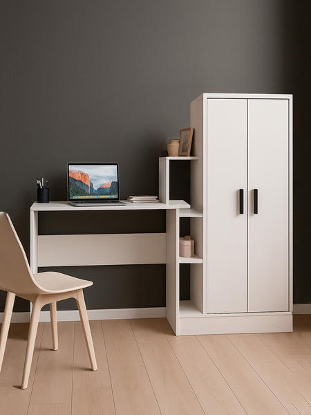 Компьютерный письменный стол СКМ-1 - это необходимый предмет мебели для детской и подростковой комнаты. Стол письменный выполнен из качественного ЛДСП, что обеспечивает его прочность и долговечность. Материал столешницы и основания гарантирует надежность и устойчивость конструкции. Письменный стол оснащен вместительным шкафом с тремя полками для удобного хранения книг, учебников и личных вещей, это позволяет сэкономить пространство в комнате и помогает поддерживать порядок на рабочем месте. Габариты компьютерного стола составляют 150 см в ширину, 60 см в глубину и 135 см в высоту, этот размер позволяет разместить его даже в небольшой комнате и обеспечивает комфортное рабочее пространство для учебы. Стол для школьника СКМ-1 имеет белый цвет, который легко впишется в любой интерьер. Важно отметить, что данный компьютерный стол возможно собрать только согласно схеме сборки, как на фото. Это гарантирует правильность и надежность сборки, а также удобство использования стола. Стол поставляется в разобранном виде, что облегчает его транспортировку и установку. В комплекте идет инструкция по сборке и все необходимые для этого элементы. И если вы ищете стильный, функциональный и прочный письменный стол для своего ребенка, то этот стол стоит вашего внимания.