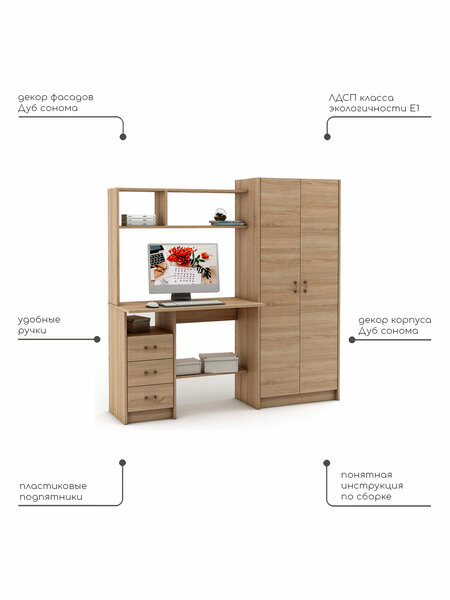 Достоинства:удобный, функциональный, вместительный Недостатки:не обнаружили Комментарий:Стол привезли даже раньше обговоренного срока, подняли на этаж. Супруг сам собрал за пару часов. Вся фурнитура на месте, всего хватило. Порадовало, что дверцы на шкафу с доводчиками. Дочери стол понравился. Единственное, хотелось бы, чтобы углы у стола были скруглены и края отделаны толстой резиновой кромкой. В остальном все отлично. Спасибо производителю.
