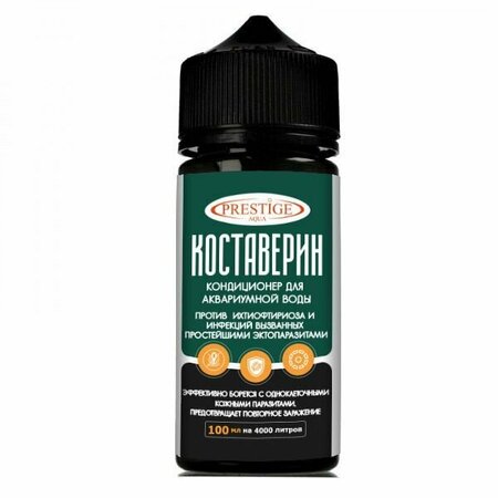 Кондиционер для аквариумной воды от Prestige Aqua против ихтиофтириоза у рыб, вызванного паразитическими простейшими Ichthyophthirius multifiliis. Эффективен также в отношении таких паразитов, как Neoichthyophthirius, Chilodonella, Tetrahymena, Trichodina, жгутиконосцы рода Costia и неспецифические амебы, грибков родов сапролегния и ахлия. Препарат «Коставерин» помогает устранить белые точки на коже, жабрах и плавниках рыб, которые выглядят как «манка» и являются признаками болезни ихтиофтириоз. Может успешно применяться против одноклеточных паразитов, поражающих кожу, жабры и плавники аквариумных рыб. Симптомы, которые могут указывать на наличие ихтиофтириоза у рыб: