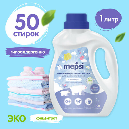 Кондиционер-ополаскиватель для детского белья Mepsi бережно ухаживает за тканью, делая стирку более мягкой и деликатной. Специальный состав кондиционера включает в себя исключительно натуральные компоненты: он изготовлен на основе артезианской воды и не содержит агрессивных веществ, поэтому Mepsi абсолютно безопасен для применения с первых дней жизни. У вас чувствительная кожа? Забудьте о сухости и раздражении: с кондиционером Mepsi эта проблема останется в прошлом. Активные вещества на основе природного сырья сделают ткань мягкой, послушной и свежей – Mepsi отлично подойдёт для смягчения всех видов детской одежды, постельного белья или полотенец. Боитесь за цвет ткани? Ополаскиватель Mepsi не содержит красителей, а значит, не повлияет на его оттенок. Mepsi надолго сохранит свежесть чистого белья – а приятный аромат кондиционера понравится как родителям, так и ребёнку. Преимущества: