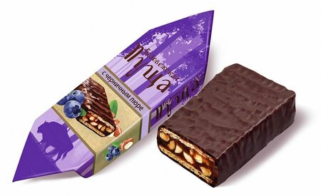 Конфеты "Беловежская Пуща с черничным пюре Коммунарка" - это сочетание отборного шоколада и начинки из натруального черничного пюре с добавлением дробленного жареного арахиса. Ингредиенты вместе создают неповторимый вкус! Ароматный шоколад приятно тает во рту, оттеняя вкус сладких лесных ягод с присущей им легкой кислинкой, а жареный арахис добавляет приятного хруста и яркие ореховые нотки.