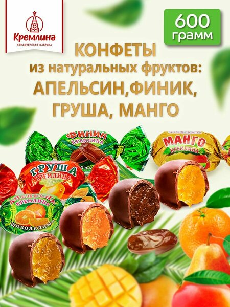 Ассорти конфет из манго, апельсина, финика и груши - это не только вкусное, но и полезное лакомство. Манго и апельсин способствуют укреплению иммунитета и насыщают организм витамином C. Финики помогают улучшить пищеварение и обмен веществ, а также содержат антиоксиданты, которые поддерживают здоровье кожи. Груша дополняет этот набор своими полезными свойствами, включая положительное влияние на пищеварение. Упаковка конфет весом 600 грамм — это идеальное решение для тех, кто ищет оптимальный объем сладкого. Она предлагает достаточное количество конфет, чтобы угостить семью или друзей, но при этом не перегружает запасами. Такой формат сочетает в себе удобство, экономию и свежесть: конфеты не теряют своего вкуса, а упаковки хватает на несколько дней. 600 грамм — это именно тот объем, который позволит наслаждаться сладким угощением в течение нескольких дней, не беспокоясь о том, что конфеты быстро закончится или утратят свои качества. Упаковка конфет 600 грамм — это удачное сочетание практичности и щедрости, которое понравится всем! Закончите ваш день на сладкой ноте с нашими шоколадными конфетами, которые подарят вам незабываемый вкус и радость. Каждая коробка, будь то подарочные конфеты или весовые шоколадные драже, наполнена натуральными ингредиентами и без добавления сахара. Наши конфеты из сухофруктов в шоколаде — идеальный выбор для любителей полезных сладостей, которые не хотят отказываться от удовольствия. Удивите близких коробкой конфет 1 кг или создайте оригинальный букет из конфет, который станет отличным подарком. Любой получатель скажет мерси за такой подарочный продуктовый набор конфет. Для тех, кто ценит разнообразие, мы предлагаем конфеты шоколадные в коробке, жевательные конфеты, марципан и даже малину в шоколаде - это победа вкуса в каждой конфете. Позвольте себе насладиться лучшими продуктами питания и вкусняшками в каждой упаковке.