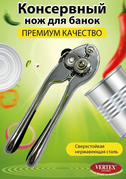 Консервный нож для банок от VERTEX SANTORINO - это незаменимый помощник на вашей кухне. С его помощью вы сможете быстро и без особых усилий открыть любую консервную банку, будь то тушенка, кукуруза или оливки. VERTEX SANTORINO - это бренд, который зарекомендовал себя на рынке кухонной утвари. Продукция этого производителя отличается высоким качеством, долговечностью и стильным дизайном. Консервный нож для банок от VERTEX SANTORINO имеет удобную ручку, которая не скользит в руке и обеспечивает надежный хват. Это позволяет вам легко и быстро открывать банки, не прилагая лишних усилий. С помощью этого консервного ножа вы сможете открыть банки различных размеров и форм. Консервный нож от VERTEX SANTORINO - это не только удобный инструмент для кухни, но и стильный аксессуар, который станет украшением вашего стола.