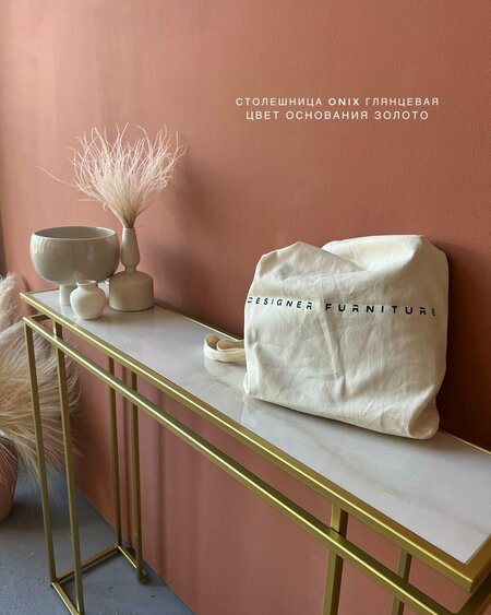 Консоль ONIX_gold_LUCHI - это стильный и функциональный элемент интерьера, который станет ярким акцентом в вашем доме. Столешница выполнена из керамогранита, который имитирует фактуру камня оникс. Этот материал отличается своей прочностью и устойчивостью к царапинам и пятнам. Благодаря этому, консоль будет служить вам долгие годы, сохраняя свой первоначальный вид. Основание консоли выполнено из металла, что обеспечивает ей прочность и устойчивость. Цвет основания - золотистый, что придает изделию особый шарм и элегантность. Консоль имеет прямоугольную форму и стандартные размеры: длина - 110 см, ширина - 23 см, высота - 90 см. Толщина столешницы составляет 9 см. Уход за консолью прост: достаточно протирать ее влажной тряпочкой без использования агрессивных моющих средств. Выбирая консоль ONIX_gold_LUCHI, вы получаете стильный и качественный элемент интерьера, который станет украшением вашего дома и подчеркнет ваш вкус.
