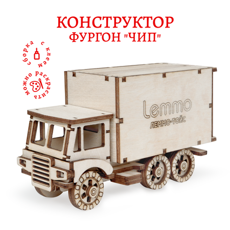 'Конструктор деревянный подвижный Lemmo Фургон "ЧИП" станет интересным подарком не только для ребенка, но и для взрослого. Поэтому 3D пазл можно подарить мальчику девочке, друзьям и коллегам. У собранной модели из фанеры вращаются колеса, открываются дверцы фургона. При желании деревянную игрушку можно раскрасить акриловыми красками. Экологически чистый и качественный конструктор, который собирается с минимальным использованием клея. Сборная модель из дерева способствует развитию мелкой моторики и предметному моделированию, а также воображению, пространственному мышлению и логики. Вы приятно проведёте время за сборкой, а готовая модель послужит не только игрушкой, но и стильным украшением интерьера! Кол-во деталей: 59 шт. Размеры: 150х55х90 мм Что в наборе: - клей ПВА; - наждачная бумага; - подробная инструкция.