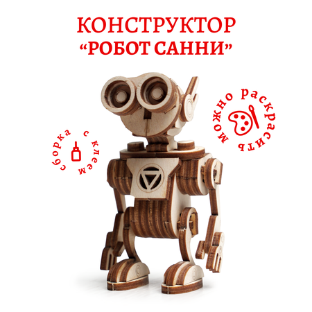 Конструктор деревянный Lemmo Робот Санни станет интересным подарком не только для ребенка, но и для взрослого. Поэтому 3D пазл можно подарить мальчику, девочке, друзьям и коллегам на Новый год, День Рождения, 23 февраля или 8 марта. У собранной модели из фанеры вращаются «руки»,»ноги» и «голова». При желании деревянную игрушку можно раскрасить любыми красками. Экологически чистый и качественный конструктор, который собирается с минимальным использованием клея. Сборная модель из дерева способствует развитию мелкой моторики и предметному моделированию, а также воображению, пространственному мышлению и логики. Вы приятно проведёте время за сборкой, а готовая модель послужит не только игрушкой, но и стильным украшением интерьера! Кол-во деталей: 60 шт. Размеры: 90x50x4 мм В наборе: наждачная бумага; подробная инструкция; клей ПВА.