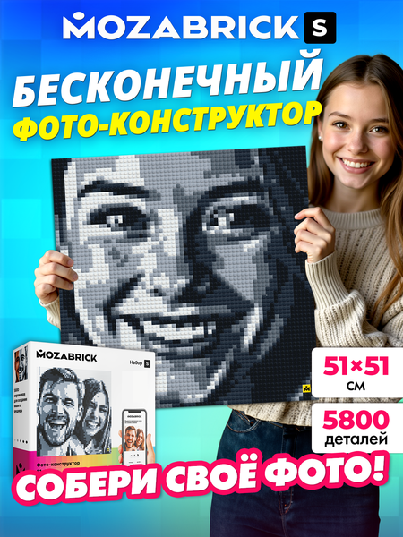 Вам нравится пиксель арт? Любите оригинальные фото картины на стену? Ищете идею для необычного памятного подарка для мужчины и женщины мальчика и девочки? А может, подарок учителю? Блочный конструктор по фото Mozabrick — это то, что нужно! Перед вами универсальный супер 3д пазл по номерам, который позволяет превратить любую фотографию в крутую картину в стиле пиксель art. Всего три простых шага. 1 Купите конструктор портрет (три размера на выбор: S, M, L). 2 Загрузите свою фотографию на сайт и получите инструкцию по сборке картины-мозаики. 3 Соберите 3д пазл и наслаждайтесь тем, как классно выглядит любимое фото! И вишенка на торте: набор для творчества можно пересобирать столько раз, сколько захотите! Надоела картина? Разобрали, выбрали новую фотографию, загрузили на сайт, собрали - повторяйте по желанию. Фото мозайка – по-настоящему интересная творческая игрушка для мальчиков, девочек подростков и взрослых всех возрастов. Если вы выбираете подарки на память подруге, для девочек или игрушки для мальчика — попробуйте генерацию фото в мозаику! Одинаковые наборы можно объединять, чтобы собрать огромную фотографию с крутой детализацией! Мы производим детские игрушки и фотокартины из безопасного ABS пластика без запаха. Почему наш фотоконструктор - это отличный подарок для девочки? С его помощью она может собрать фотографию любимой кошки или родителей. Еще из конструктора для мальчиков можно собрать любимого супергероя или лучшего друга! Возможности конструктора из кубиков безграничны! Конструктор интерьерный — это уникальный презент на любые праздники. Картина по номерам - также универсальный подарок ребенку. Вот почему покупатели выбирают этот подарочный набор. Картина со своим фото станет увлекательным занятием на долгие годы, позволяя воплощать новые картины снова и снова! Такой подарочный набор не потеряет актуальности. Подарите себе и своим близким бесконечное количество позитива вместе с конструктором Mozabrick! Сертифицировано для детей. Произведено в России.