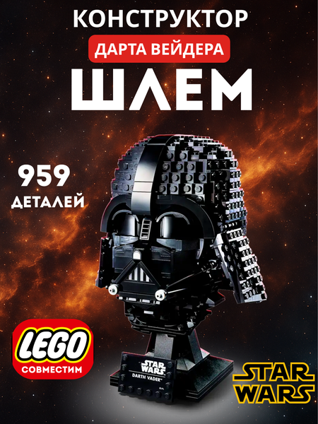 Конструктор Star Wars Шлем Дарта Вейдера, 834 детали совместим с лего, коллекционный большой конструктор