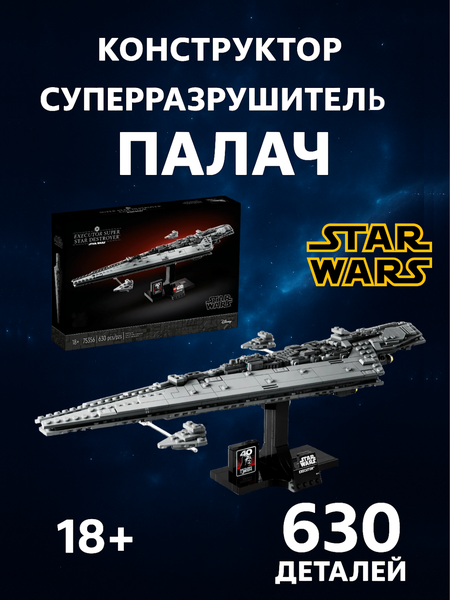 Точная модель корабля класса Executor 630 деталей — увлекательная сборка для всей семьи Реалистичные элементы: мостик, двигатели, турели Подходит для детей от 9 лет и взрослых поклонников Развивает внимание, мышление и творческие навыки