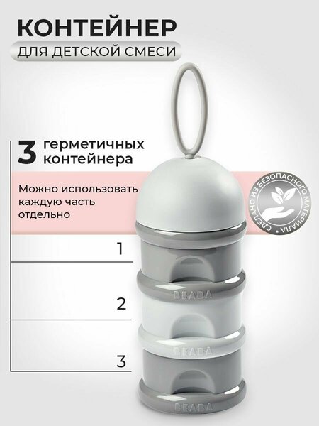 BEABA контейнер для детского питания, сыпучих смесей и снеков, контейнер для смеси детской, порционный 3 секции, дозатор молочного питания пищевой