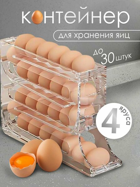 Контейнер в 4 слоя для яиц в холодильнике, всместительность до 30 яйц , в зависимости от размера яйц. Подставка для яиц специально разработана так, что яйца удобно подаются вам каждый раз и не приходится тянутся за ними в глубь холодильника. Благодаря компактным размерам органайзер для яиц в холодильник легко поместится как на полке, так и на дверце, максимально эффективно используя пространство. Больше не будет беспорядка и разбитых яиц, только организованное и аккуратное хранение. Продуманная конструкция контейнера обеспечивает бережное хранение и защиту яиц от повреждений. Прозрачный материал позволяет легко контролировать количество оставшихся яиц, чтобы вовремя пополнить запасы. Это не просто аксессуар, а практичный и стильный элемент, который добавит организованности и эстетики в ваш холодильник. Забудьте о хаосе и наслаждайтесь порядком с удобным и функциональным контейнером для яиц.