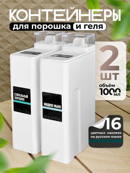 Контейнер для порошка набор из двух штук - это лучший вариант для хранения стирального порошка, кондиционера для белья и других моющих средств. Компактный размер органайзера экономит место в ванной комнате, а благодаря надежной крышке содержимое защищено от влаги и вредных химических веществ. Набор является умной альтернативой громоздким упаковкам, которые занимают много места и не всегда сохраняют свою форму. Узкий носик этих контейнеров предотвращает рассыпание содержимого, а мерная крышка легко очищается после использования сыпучих или жидких средств. Белый цвет емкостей прекрасно сочетается с любым интерьером и добавляет эстетической привлекательности. Кроме того, контейнеры могут быть использованы для хранения круп, муки, еды и других продуктов, а также для средств по уходу за вещами, посудой и полами. В комплекте имеются 15 дублирующихся наклеек на выбор. Это идеальный подарок для женщин, мам, подруг, бабушек, коллег и близких на 8 Марта, день рождения или новоселье. Создайте свою собственную коллекцию контейнеров для стирки, под гель, отбеливателя, мелкодисперсного порошка, ополаскивателя и жидкости для мытья полов.