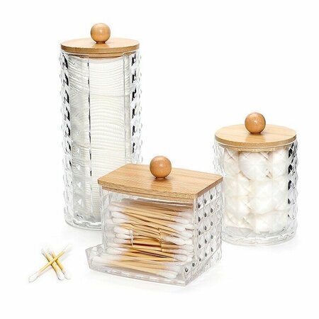Набор органайзер для ватных дисков и палочек прозрачный. С бамбуком. Контейнер для косметики / Органайзер для ванной, 3 шт