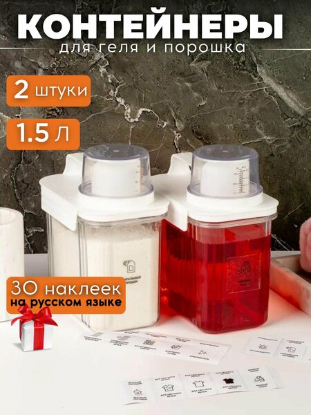 Удобные и практичные контейнеры для порошка стирального от бренда White estate HOME - идеальное решение для хранения. Наш контейнер для порошка стирального узкий прямоугольный имеет удобную крышку и ручку для легкого перемещения, а также компактный размер, который экономит место в ванной комнате. Емкость для порошка стирального защищает содержимое от влаги и прочего воздействия, вмещает в себя 2 л , 2,8 литра, 1,5 литра любой жидкой бытовой химии. Плотно закрывающаяся крышка снизит негативное влияние бытовой химии на людей склонных к аллергии, предотвращая распространение запаха. Контейнер для порошка и геля благодаря узкому носику ничего не рассыплется, а промывание мерной крышки после использования сохранит пластиковую тару в чистоте. Удобные и лаконичные баночки для бытовой химии помогут красиво организовать пространство без визуального шума от ярких и разноцветных этикеток. Выбирая контейнер для жидкого порошка, Вы сможете существенно сэкономить бюджет, приобретая жидкие средства в больших упаковках и, по мере необходимости. Органайзер для порошка поставляется в комплекте с влагостойкими наклейками по 15 штук к каждому.