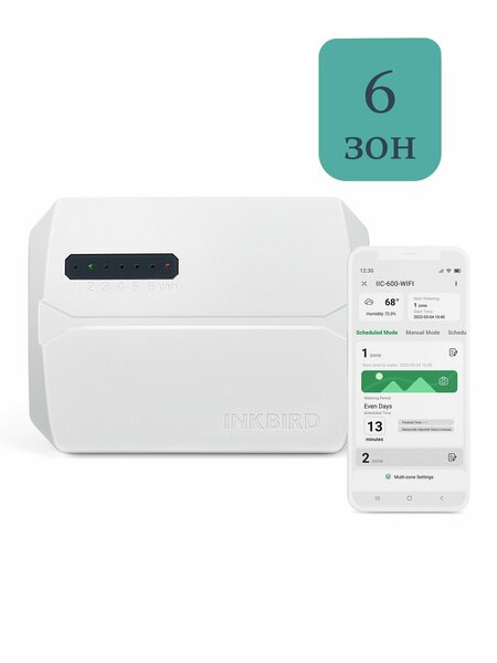 INKBIRD IIC-600-WIFI - интеллектуальный контроллер полива INKBIRD IIC-600-WIFI это обновленная версия интеллектуального спринклерного контроллера - INKBIRD с функцией Wi-Fi, которая позволяет вам управлять поливом с помощью смартфона в любое время и в любом месте. С помощью этого простого в использовании спринклерного контроллера вы можете без особых усилий выращивать красивейшие растения и создавать замечательный сад! *6-зонное управление! INKBIRD IIC-600-WIFI помогает вам контролировать полив в 6 зонах и позволяет устанавливать независимые графики полива для каждой зоны. Благодаря четырем циклам полива, которые можно выбрать, и шести моментам запуска в день, IIC-600-WIFI помогает вам обеспечивать растения, которые вы выращиваете, достаточным количеством воды! Он поддерживает автоматический режим и ручной режим полива. *Бесплатное приложение! IIC-600-WIFI поддерживает Wi-Fi, что позволяет вам контролировать процесс полива с помощью смартфона в любое время и в любом месте. С помощью удобного приложения INKBIRD вы можете сразу увидеть текущий процесс полива, историю поливов и планы. Кроме того, вы можете оптимизировать полив по времени в соответствии с местными погодными условиями, температурой и влажностью на вашем участке. *Пропуск сезона дождей и другие регулировки! Вы можете подключить датчик дождя (датчик дождя не входит в комплект) к IIC-600-WIFI, позволяя ему автоматически прекращать полив в дождливые дни, экономя воду и деньги. Кроме того, он имеет функцию сезонной регулировки, которая позволит вам регулировать время полива за одну операцию, удовлетворяя различные потребности растений в росте в разное время года. * Память сохраненных настроек! После установки сохраняется на весь срок службы. IIC-600-WIFI оснащен энергонезависимой памятью, которая позволяет постоянно сохранять все параметры настройки даже после длительного отключения питания. Нет необходимости повторять настройки, что экономит ваше время и усилия при использовании. *Простота установки и использования! Чрезвычайно легко и быстро установить IIC-600-WIFI и настроить автоматическую систему орошения для вашего сада, что освободит вас от ежедневных процедур полива. Благодаря этому интеллектуальному контроллеру дождевания, ваши растения смогут интенсивно расти при достаточном количестве воды каждый день!