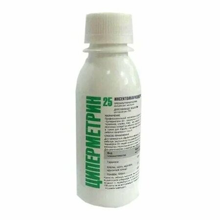 Средство от насекомых, от блох, от клопов, от тараканов, от мух, от клещей - 1 флакон Циперметрин 25 по 100 мл.