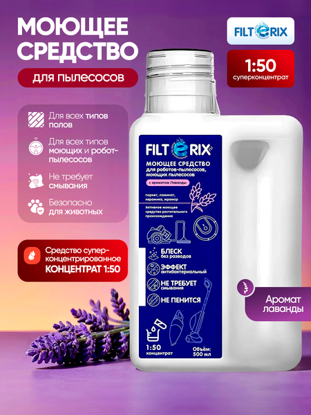 Моющее средство с запахом лаванды для пылесосов всех типов и роботов-пылесосов - это идеальное решение для поддержания чистоты и свежести в доме. Представленный концентрат 1:50, объем 500 мл, отлично подходит для всех популярных моделей, включая устройства от таких брендов, как Xiaomi, Roborock, Tefal, Dreame и многих других. Благодаря своим уникальным свойствам, данное экосредство не только эффективно очищает поверхности, но и бережно заботится о вашем оборудовании. Одной из ключевых особенностей этой жидкости с цветочным ароматом для пола является её не пенящееся формула. Это особенно удобно для использования в роботах-полотерах, поскольку не создает лишней пены, что может мешать работе устройства. Теперь, пользуясь концентратом, вы можете быть уверены в том, что ваш помощник будет работать на полную мощность. Применение данной химии для моющего пылесоса обеспечивает идеальную гигиену и удаление загрязнений с различных типов покрытий. Она отлично подходит для мытья полов из плитки, ламината и паркета. Процесс уборки станет не только проще, но и быстрее, благодаря мощному очищающему действию, которое легко справляется с самой стойкой грязью. Эффективное удаление пятен и запахов - еще одно преимущество супер-концентрата. Оно борется не только с видимыми загрязнениями, но и глубоко проникает в поверхность, устраняя неприятные запахи и предотвращая их появление. Благодаря этому дом наполняется свежестью и чистотой, что особенно важно для тех, кто заботится о здоровье своей семьи. Средство станет идеальным дополнением к вашему арсеналу для уборки. Вы можете спокойно использовать его в сочетании с устройствами от таких брендов, как Dyson, дайсон, Polaris, поларис, Ecovacs, ксиоми, Irobot, Rowenta, ровента, дрими, Genio, Ilife, Bosch, бош, Moulinex, Viomi, Lydsto, Mijia, 360, Philips, филипс и Samsung, самсунг. Универсальность позволяет легко адаптироваться под любые потребности и типы уборки. Не забывайте, что поддержание чистоты в доме - это не только вопрос эстетики, но и здоровья. Используя моющее для пола, вы обеспечите своей семье безопасное и комфортное проживание. Оно не содержит агрессивных химических компонентов и подходит для людей с чувствительной кожей, а также для семей с детьми и домашними животными. Уровень PH- 7