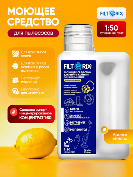 Моющее средство с ароматом лимона для пылесосов всех типов и роботов-пылесосов - это идеальное решение для поддержания чистоты и свежести в доме. Представленный концентрат 1:50, объем 500 мл, отлично подходит для всех популярных моделей, включая устройства от таких брендов, как Xiaomi, Roborock, Tefal, Dreame и многих других. Благодаря своим уникальным свойствам, данное экосредство не только эффективно очищает поверхности, но и бережно заботится о вашем оборудовании. Одной из ключевых особенностей этой жидкости для пола является её не пенящееся формула. Это особенно удобно для использования в роботах-полотерах, поскольку не создает лишней пены, что может мешать работе устройства. Теперь, пользуясь концентратом, вы можете быть уверены в том, что ваш помощник будет работать на полную мощность. Применение данной химии для моющего пылесоса обеспечивает идеальную гигиену и удаление загрязнений с различных типов покрытий. Она отлично подходит для мытья полов из плитки, ламината и паркета. Процесс уборки станет не только проще, но и быстрее, благодаря мощному очищающему действию, которое легко справляется с самой стойкой грязью. Эффективное удаление пятен и запахов - еще одно преимущество супер-концентрата. Оно борется не только с видимыми загрязнениями, но и глубоко проникает в поверхность, устраняя неприятные запахи и предотвращая их появление. Благодаря этому дом наполняется свежестью и чистотой, что особенно важно для тех, кто заботится о здоровье своей семьи. Средство станет идеальным дополнением к вашему арсеналу для уборки. Вы можете спокойно использовать его в сочетании с устройствами от таких брендов, как Dyson, дайсон, Polaris, поларис, Ecovacs, ксиоми, Irobot, Rowenta, ровента, дрими, Genio, Ilife, Bosch, бош, Moulinex, Viomi, Lydsto, Mijia, 360, Philips, филипс и Samsung, самсунг. Универсальность позволяет легко адаптироваться под любые потребности и типы уборки. Не забывайте, что поддержание чистоты в доме - это не только вопрос эстетики, но и здоровья. Используя моющее для пола, вы обеспечите своей семье безопасное и комфортное проживание. Оно не содержит агрессивных химических компонентов и подходит для людей с чувствительной кожей, а также для семей с детьми и домашними животными. Уровень PH- 7