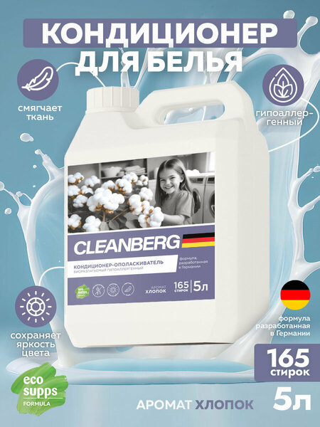 Кондиционер ополаскиватель для белья CLEANBERG – мягкость, свежесть и бережный уход! Это универсальное средство, созданное для деликатного ухода за всеми типами тканей. Его мягкая формула подходит для цветного, черного и белого белья, а также идеально для детской одежды, обеспечивая защиту чувствительной кожи и сохранение структуры волокон. Почему выбирают CLEANBERG? ✔ Гипоаллергенный состав – не вызывает раздражений, можно использовать, как кондиционер для белья детский. ✔ Биоразлагаемая формула – кондиционер для белья 5л безопасен для природы, не содержит агрессивных компонентов. ✔ Объем 5 литров = 165 стирок, что делает его экономичным. ✔ Деликатный уход за тканями – кондиционер для стирки предотвращает вымывание красок, сохраняет мягкость и предотвращает образование катышков. ✔ Антистатический эффект – кондиционер для стирки белья облегчает глажение и предотвращает электризацию. ✔ Парфюмированный кондиционер для белья подходит для всех типов стиральных машин и ручной стирки. Как пользоваться ? Добавьте небольшое количество средства для стирки в отсек для ополаскивателя стиральной машины или в воду при ручной стирке. Рекомендуемая дозировка указана на упаковке. CLEANBERG – это бережный уход за вашей одеждой, комфорт для кожи и забота об экологии.
