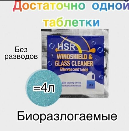Вы хотите, чтобы ваше лобовое стекло всегда было чистым и без разводов? Тогда вам точно нужны специальные таблетки для очистки лобового стекла автомобиля! Эти таблетки разработаны специально для эффективного удаления загрязнений, жировых пятен, насекомых и других загрязнений, которые могут накапливаться на стекле вашего автомобиля. Благодаря уникальной формуле, таблетки быстро растворяются в воде, образуя мощное моющее средство, которое без труда справляется с любыми загрязнениями. Преимущества использования таблеток для очистки лобового стекла:1. Простота использования: просто растворите таблетку в воде и нанесите на стекло. 1 таблетки хватает на 4 литра воды.2. Эффективность: таблетки быстро и эффективно удаляют все виды загрязнений.3. Экономичность: одна таблетка заменяет несколько обычных моющих средств.4. Безопасность: формула таблеток безопасна для стекол и не повреждает резиновые уплотнители. С таблетками для очистки лобового стекла ваш автомобиль всегда будет выглядеть идеально чистым и ухоженным. Не теряйте времени на бесполезные попытки очистить стекло обычными средствами – выбирайте качественные таблетки и наслаждайтесь идеальной видимостью на дороге!