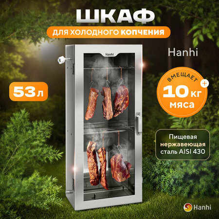 Коптильня Hanhi 53 литра для холодного копчения / Коптильный шкаф Ханхи из нержавейки / Коптилка для дачи и пикника