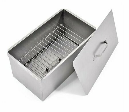 С помощью переносной коптильни «Кедр» легко и просто в любых условиях приготовить высококачественный, очень вкусный продукт. Используйте коптильню дома, на даче, на рыбалке, в походе. Коптите рыбу, дичь, мясо или сало и получайте удовольствие от самостоятельно приготовленных деликатесов! Переносная коптильня «Кедр» - отличный подарок для всех, кто любит вкусно поесть и хочет удивлять и радовать друзей лакомством собственного производства. В комплект коптильни «Кедр» входят: корпус, решетка и крышка. Пользоваться коптильней легко и просто любому человеку, даже очень далекому от кулинарии. В качестве источника тепла может служить костер, бытовая или переносная газовая плита и т. п. В качестве источника дыма рекомендуются опилки или мелкие стружки лиственных пород древесины (дуб, ольха, яблоня, вишня, груша и т. п.). В комплект коптильни входят: корпус, 2 решетки, поддон и крышка. Габаритные размеры: 425 x 270 x 175 мм Материал: сталь 0,8 мм