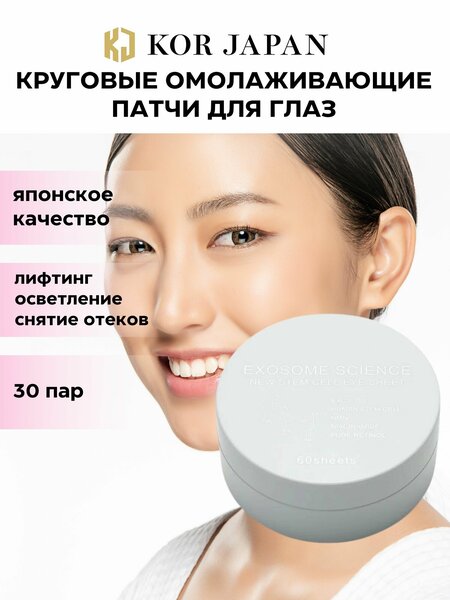 KOR JAPAN Патчи для глаз EXOSOME SCIENCE круговые омолаживающие со стволовыми клетками, NMN и ретинолом, 60 штук