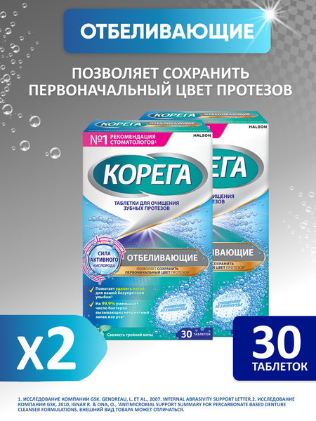 Корега Отбеливающие таблетки для тщательного очищения и восстановления естественной белизны зубных протезов, 30шт*2