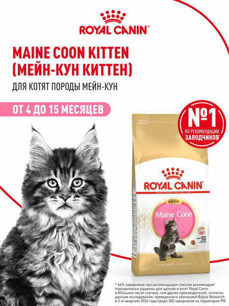 Корм сухой полнорационный сбалансированный для кошек - Специально для котят породы Мэйн Кун (в возрасте до 15 месяцев) ROYAL CANIN MAINE COON KITTEN (РОЯЛ КАНИН МЕЙН КУН КИТТЕН), подходящий для котят породы мэйн кун в возрасте от 4 до 15 месяцев, специально разработан с учетом потребностей вашего котенка в питательных веществах в период роста.