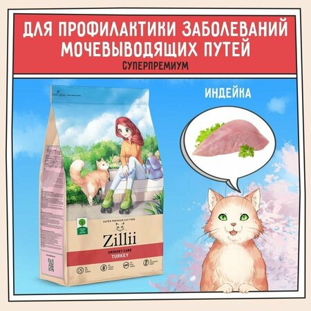 Корм сухой для кошек РН контроль 2 кг, гипоаллергенный ZILLII (Зиллии) Urinary Care Cat, Индейка